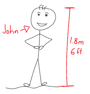 What does it mean that John is 1.8 m tall? Could you find his height by only looking at his head?