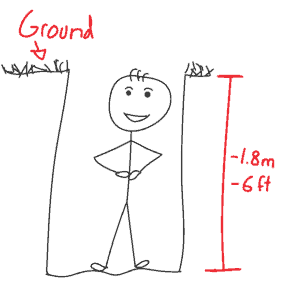 Back to John. What if we dig a hole of 1.8 meters, then put John into the hole. (Poor John).