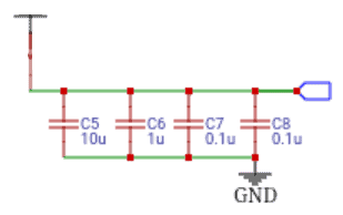 Another typical place where you’ll see capacitors connected in parallel is with microcontroller circuits. Microcontroller chips often have several power pins. And it’s common to place a capacitor from each positive power pin to ground.