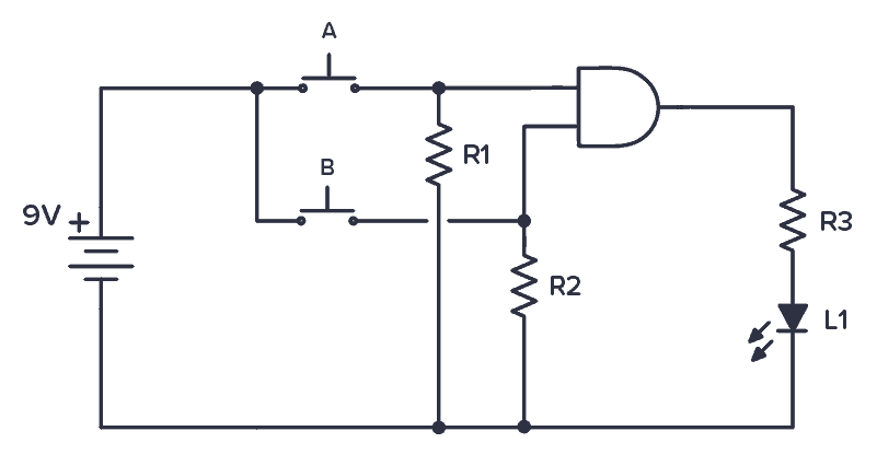The circuit demonstrates the basic operation of an AND gate. A fun project for understanding the operation of an AND gate.