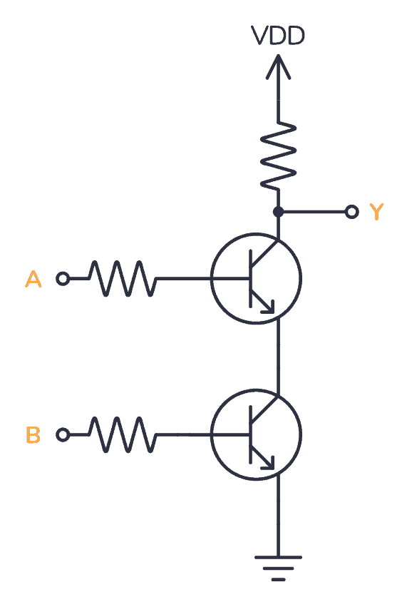 You can build a NAND gate from transistors and resistors. This technique is called resistor-transistor logic (RTL).