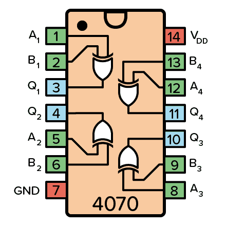 If you want to experiment and build circuits with XOR gates, you’ll find them in both the 4000 IC series and the 7400 IC series: