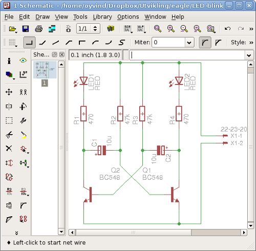 Now that you have the circuit diagram, you have to draw this into Eagle.