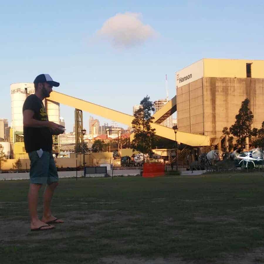 I found a big open space, put my drone down on the ground, and started the take-off.