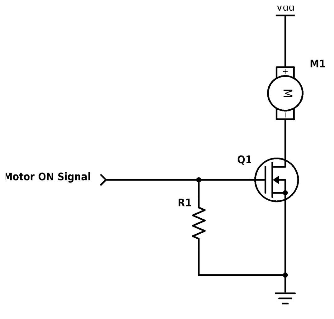 A very common method to control brushed DC motors is to use a MOSFET transistor. So, I drew up a simple schematic diagram for this:
