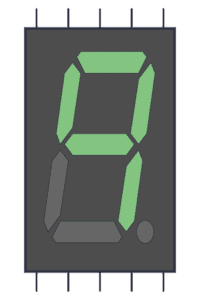 A 7-segment display is a component with seven Light-Emitting Diodes (LED) arranged as shown below. By turning on different combinations of the LEDs, a number between 0 and 9 is displayed.