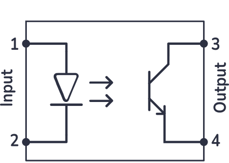 - Photodetector: On the output side, you have a photodetector, for example a phototransistor, that is responsible for detecting the light emitted by the LED on the input side.