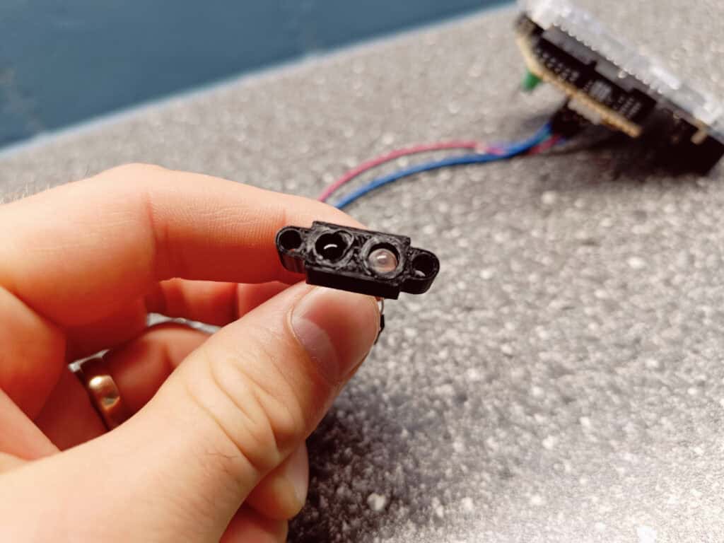 The code constantly reads the value of analog input A0 and creates a running average of the last 10 readings. This is to filter out noise. Whenever the running average changes by more than my threshold, it’s considered a detection of an object and the output pin toggles.