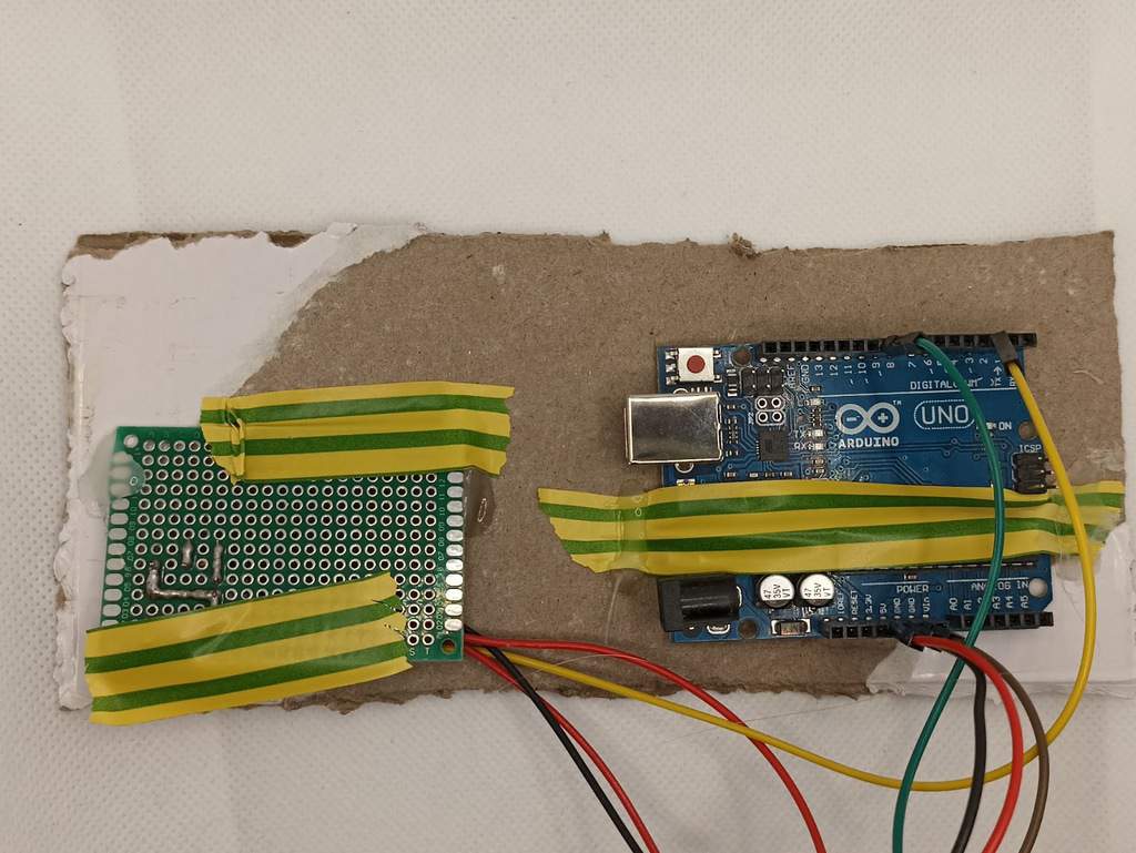 Next, connect everything to the Arduino. Take your Arduino Uno and the board you just made and make the following connections: