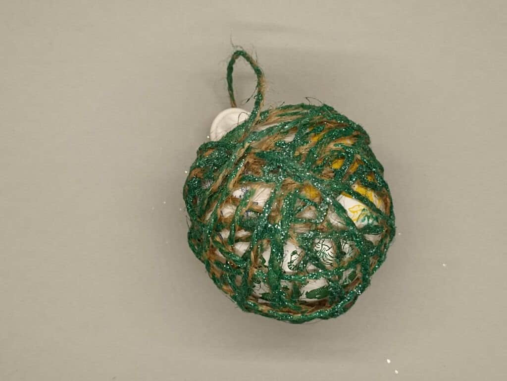 Now you decide how to proceed. If everyone is waiting for you to join them for Christmas dinner, then just use some tape to make it all stay together, then place it into something Christmassy and hang it on the tree.