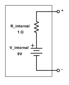 “When I measure the voltage of my 9V battery using my multimeter I get a reading of 9.06 when it is not connected to any circuit. When I hook the battery up to a simple circuit (i.e. 325 Ohm resistor in series with a red LED) and measure the voltage drop across the battery I get a reading of 8.65 V – why the difference?”