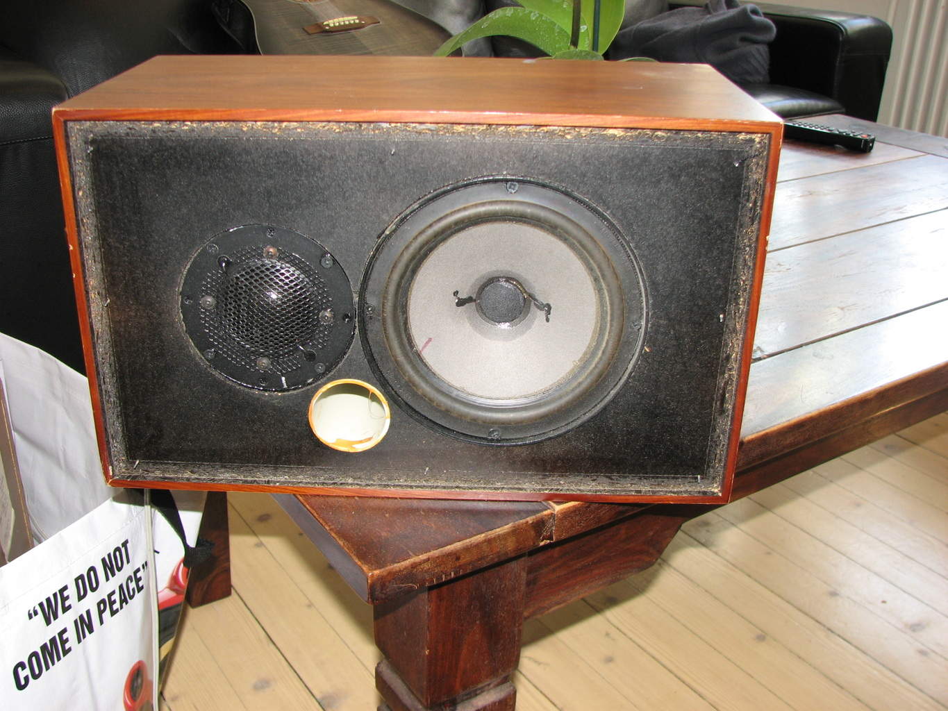 Then I cut out the front of an old speaker and replaced the original speaker element. The reason for this was that the original element didn’t have any bass at all.