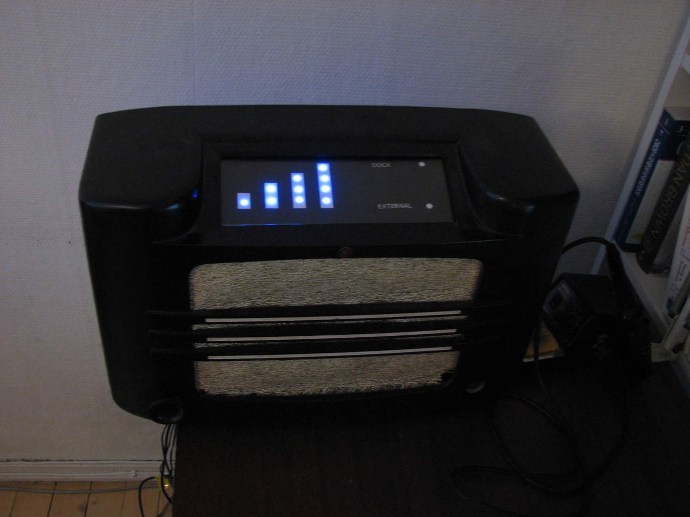 This is an electronics project of mine. It’s a 1937 Philips radio modified into a docking station.