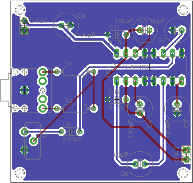 Or you can design your own printed circuit board. This is a good idea if you want to create several mono amplifier circuits. Or if you just want to practice your PCB design skills.