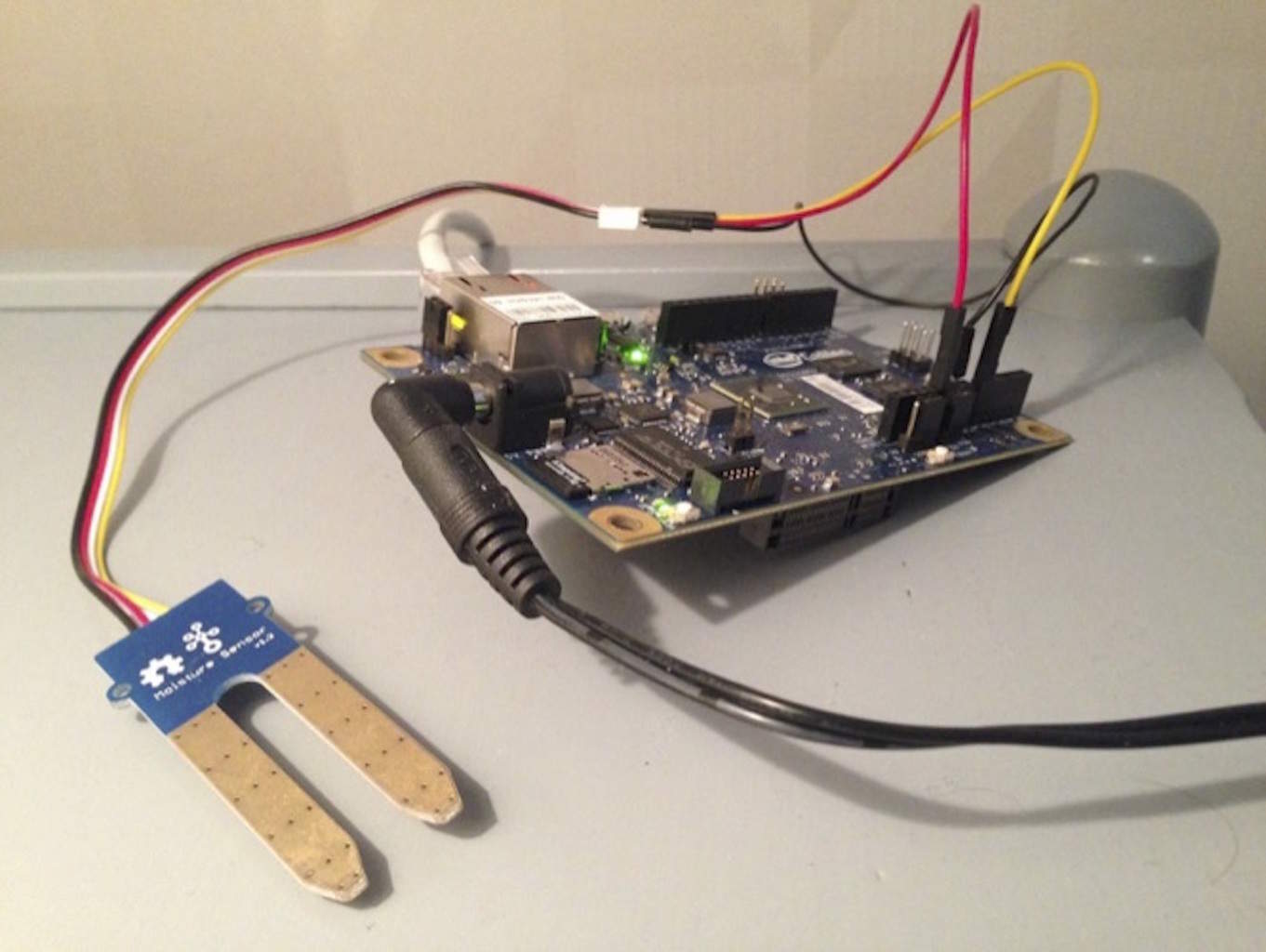 I used a Grove Soil sensor together with an Intel Galileo for this project. But you can use whatever sensor you want, as long as it connects to the ADC of your Intel Galileo.