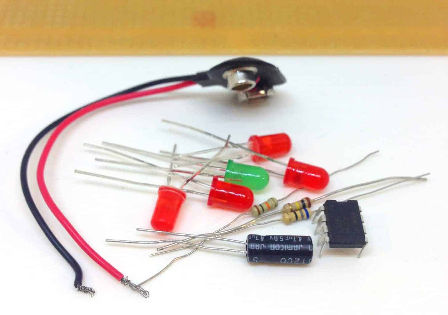 In this circuit, you’ll only need 4 components + the LEDs and the resistor.