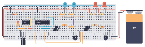 This 555 Timer Police Lights circuit is an interesting electronics project that simulates the alternating flash of police vehicle lights using LEDs.