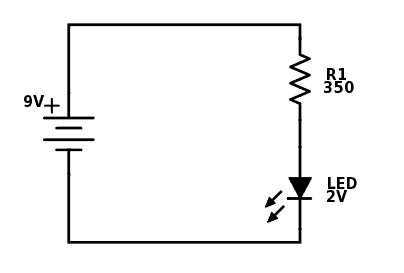 So, if you have such an LED in a circuit with a resistor and 9V battery powers the circuit, you know this: